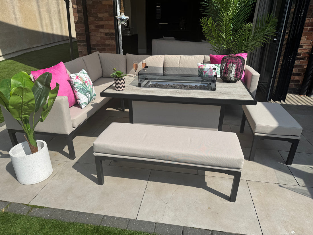 Turn Up the Heat on Outdoor Living with the Porto Aluminium Fire Pit Corner Dining...