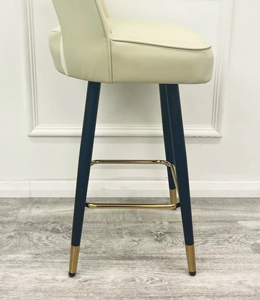 Featuring sleek black Scandinavian-style legs capped with subtle gold tips, the Ezel stools add a refined touch of luxury to any setting. Perfect for homes, bars, or cafes, these high-quality bar stools are as functional as they are fashionable.