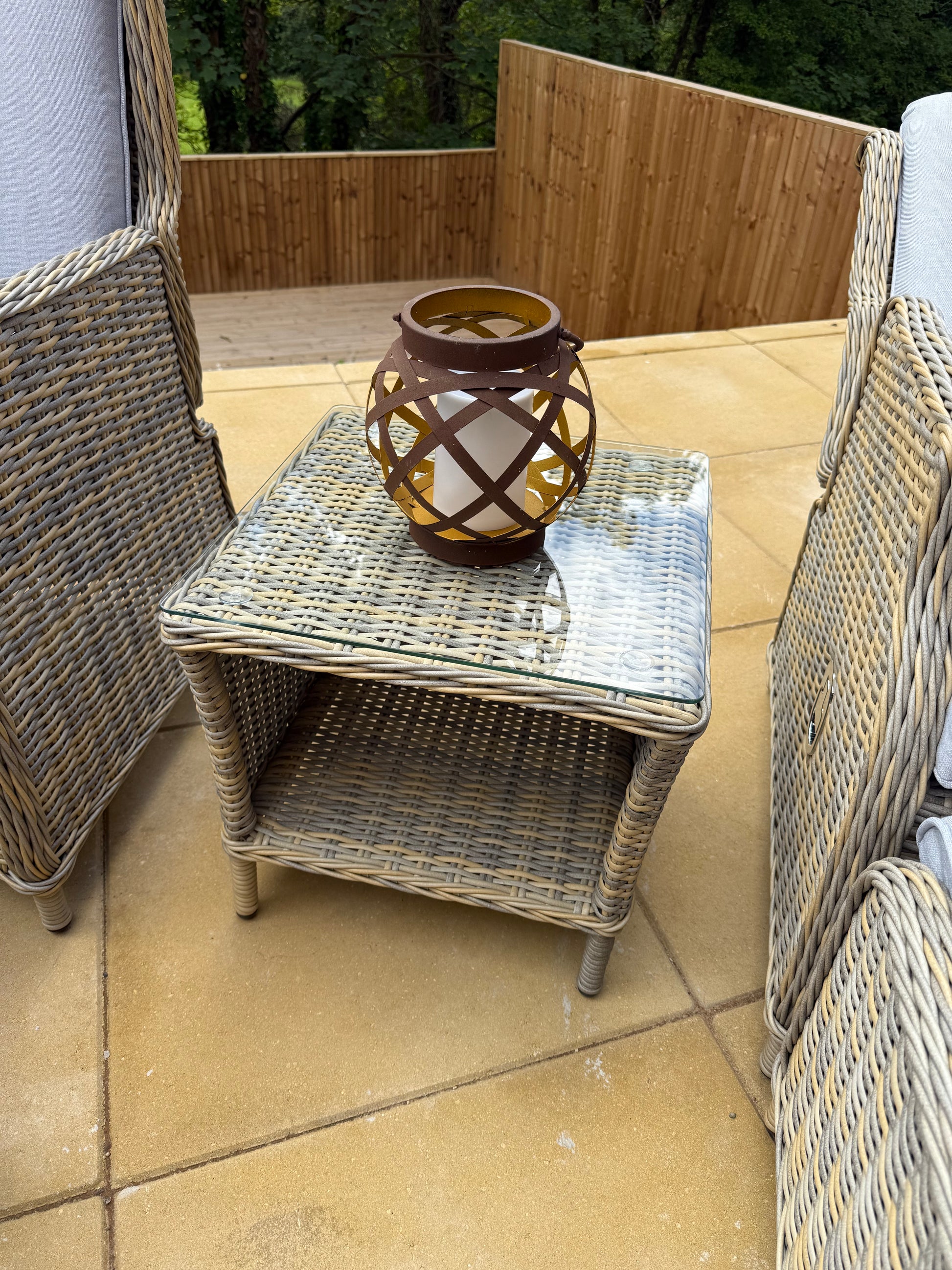 The UV-resistant, weatherproof cushions not only offer outstanding comfort but are also low-maintenance – simply store them when not in use to keep them looking fresh. Cleaning the synthetic weave is effortless with just warm, soapy water, or you can use a breathable cover for added protection.