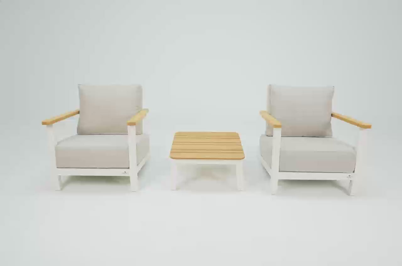 The lightweight aluminium frame offers exceptional strength, corrosion resistance, and a clean modern finish, making it ideal for year-round outdoor living. Whether placed on a patio, balcony, or garden terrace, the Sandbanks set blends seamlessly into both modern and coastal settings.