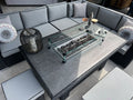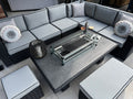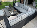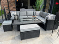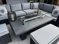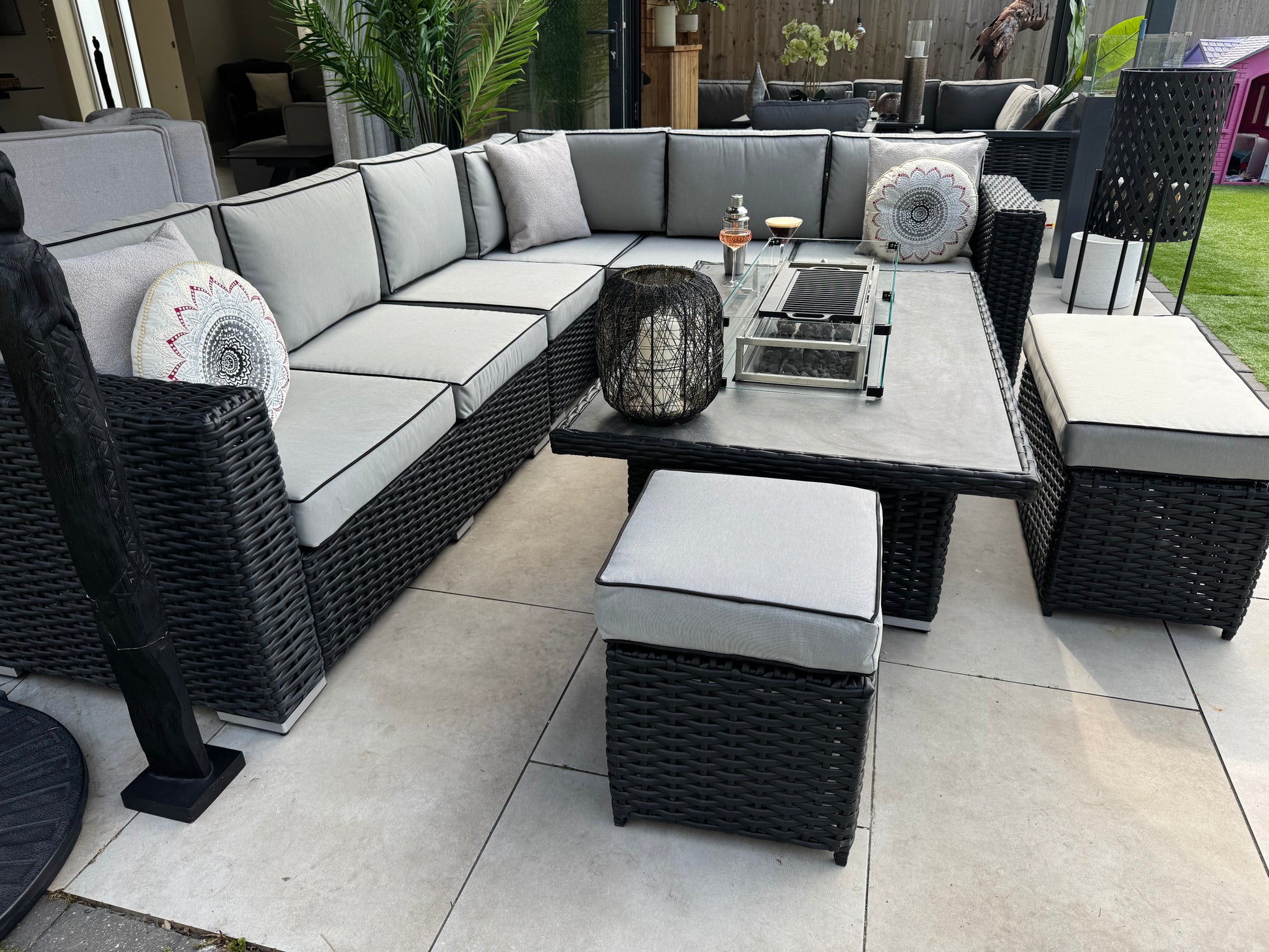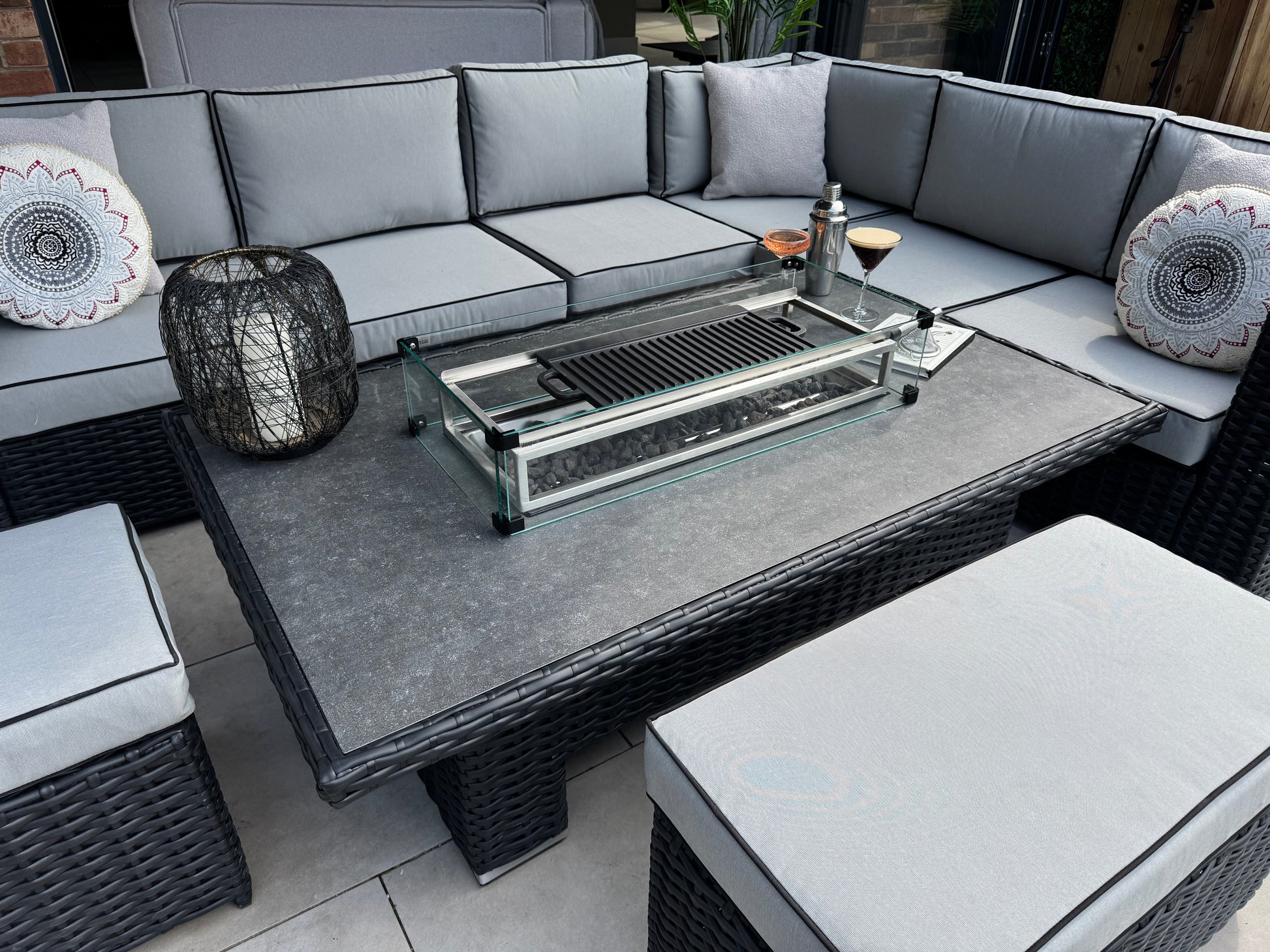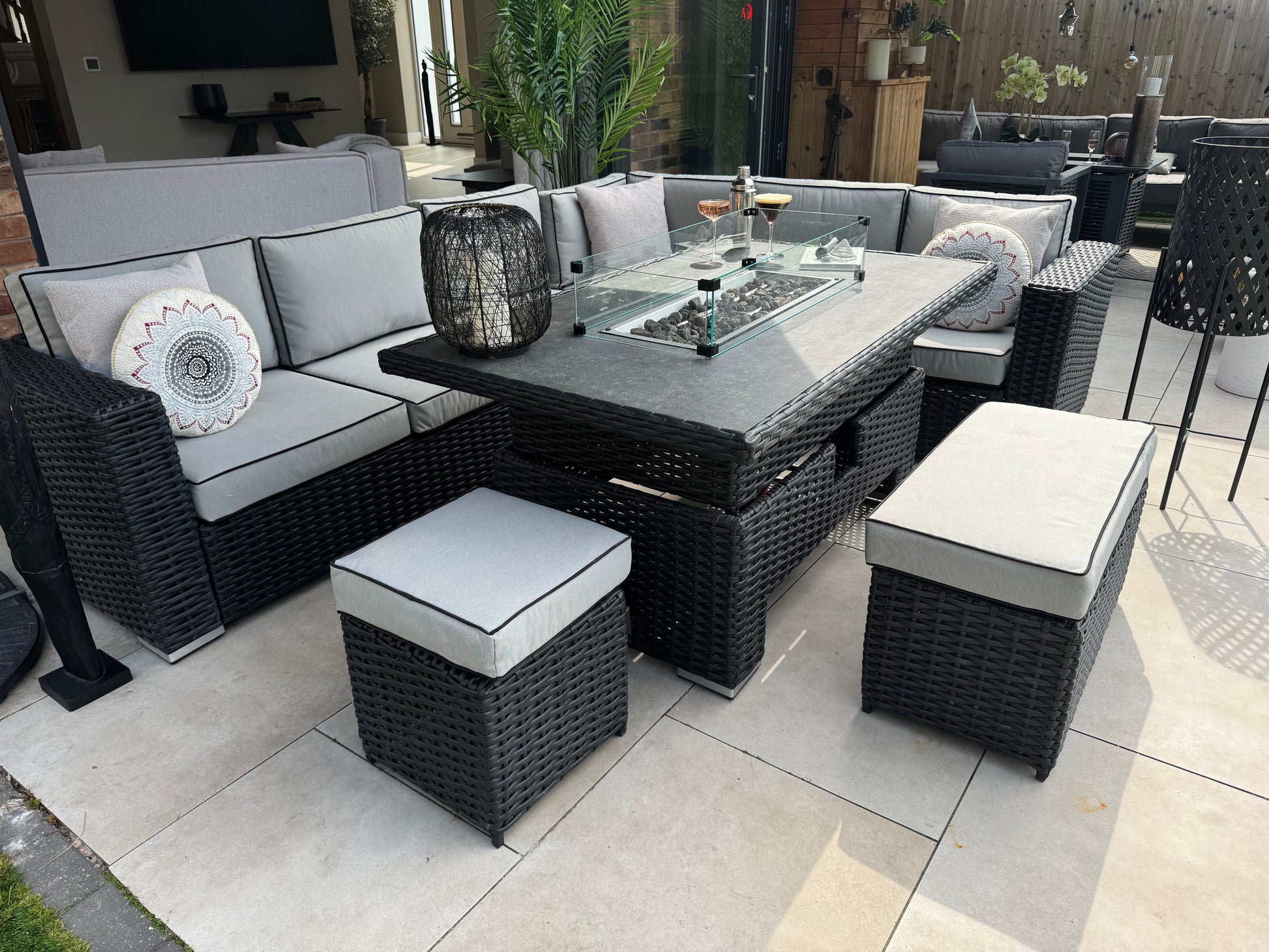 Santa Monica Black Edition Corner Sofa with Rise and Fall Fire Pit Dining Table - Bundle Buster Sale - INCLUDES FREE PARASOL WITH WEIGHTS AND FREE COVER!
