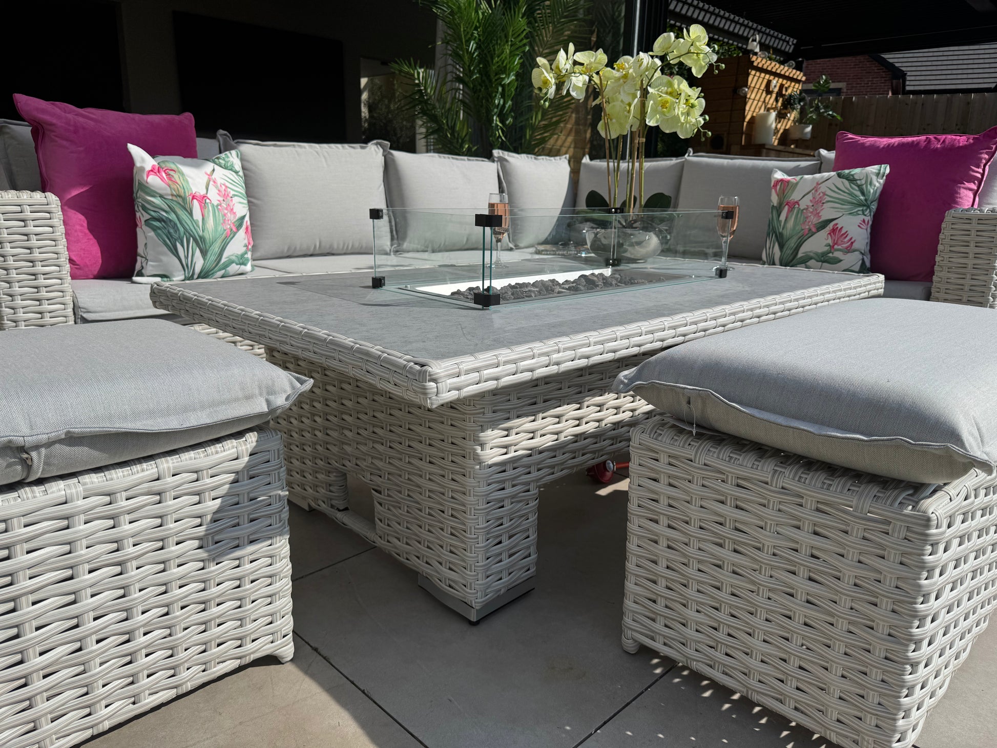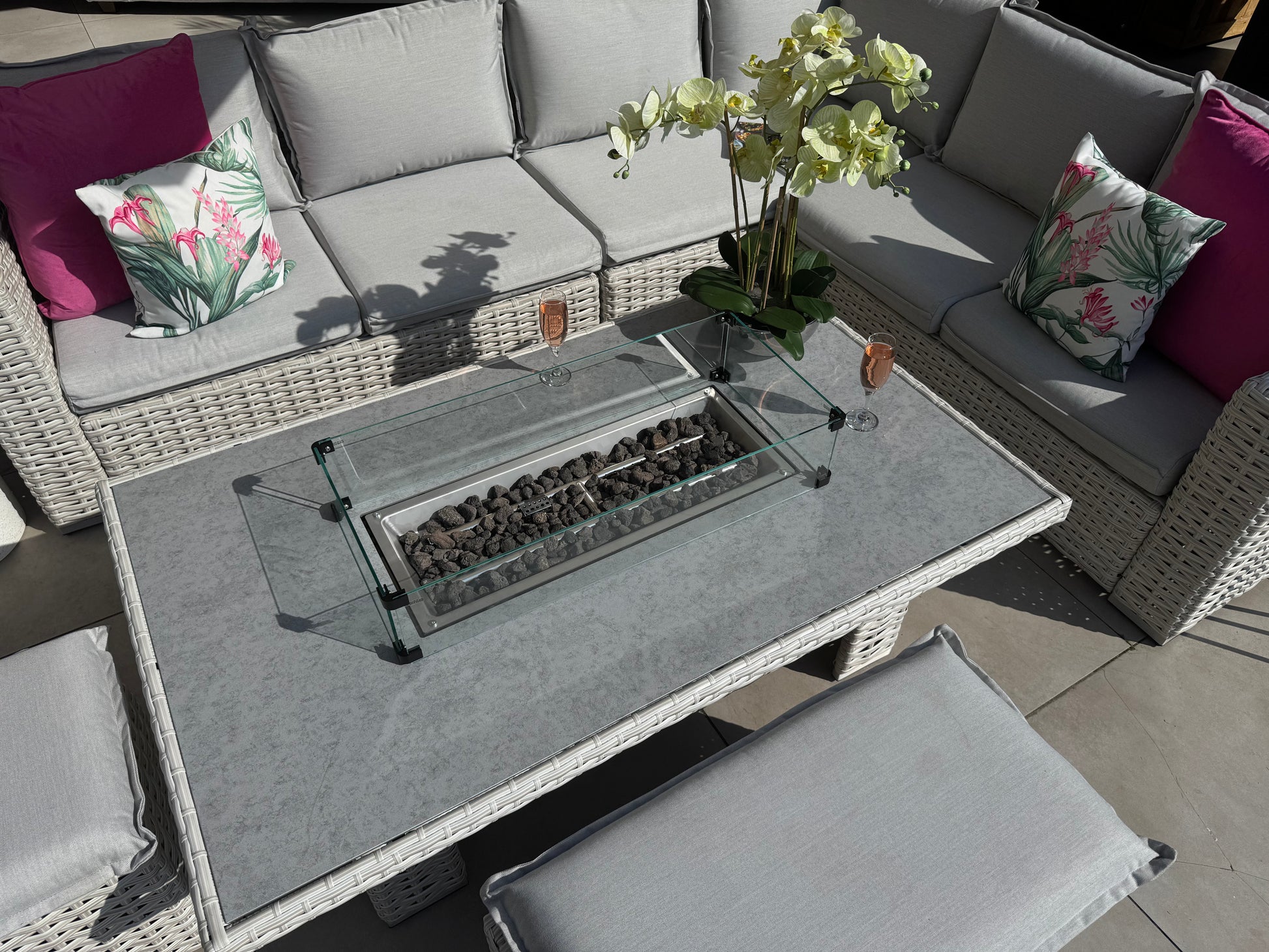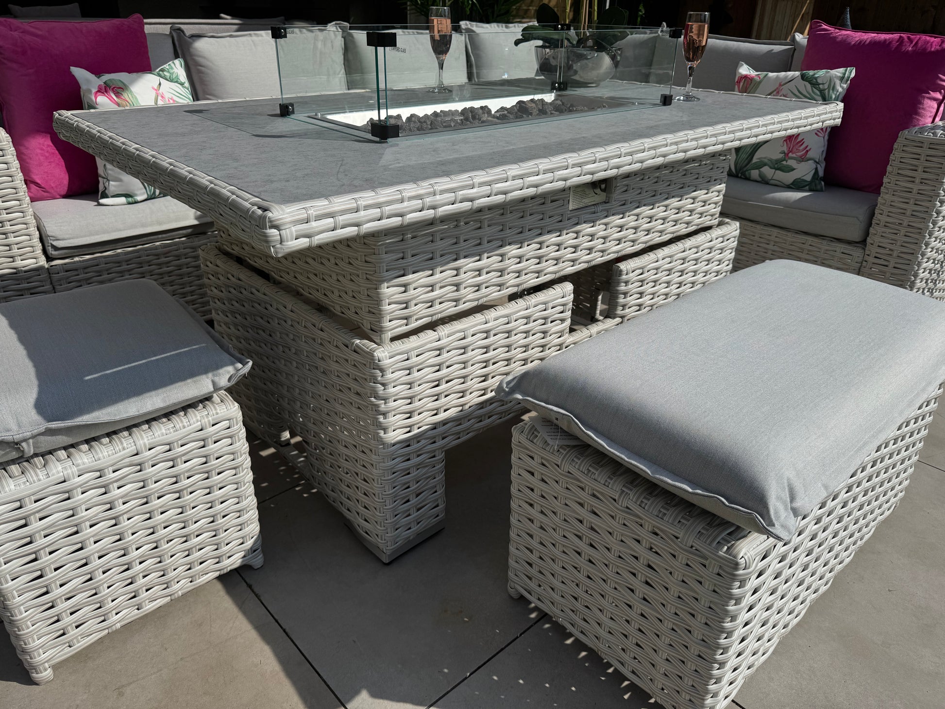 Santa Monica Corner Sofa with Rise and Fall Fire Pit Dining Table