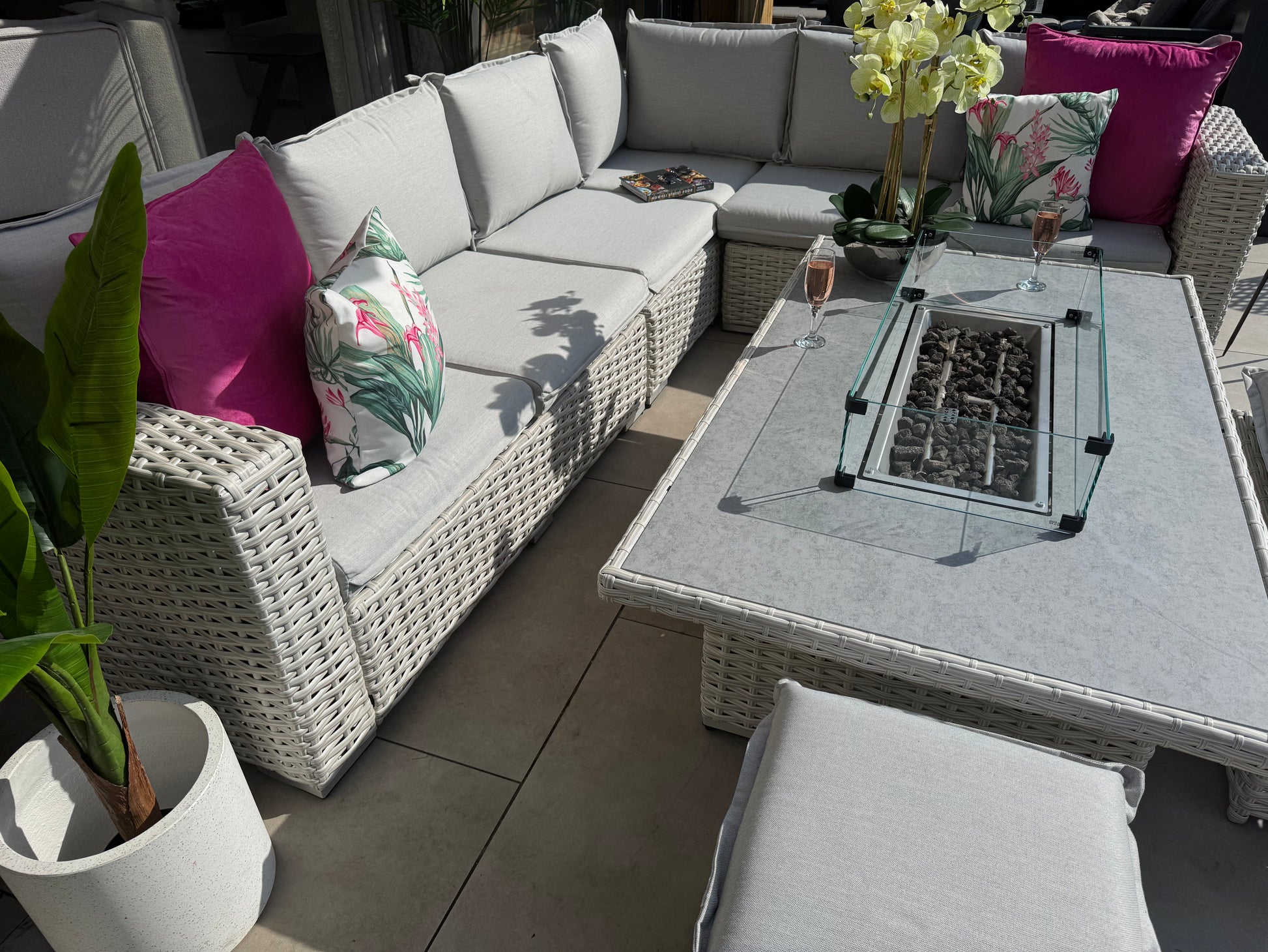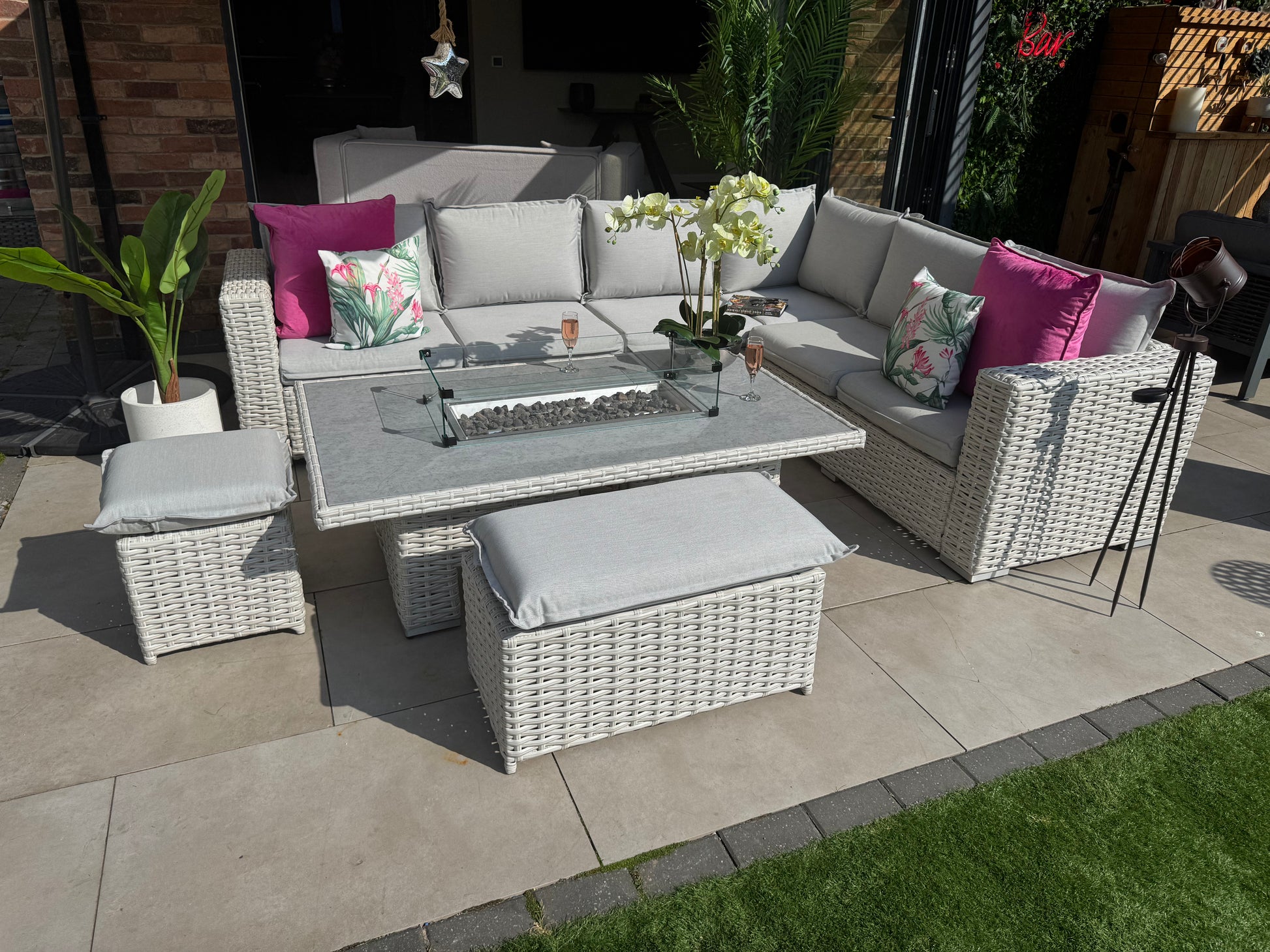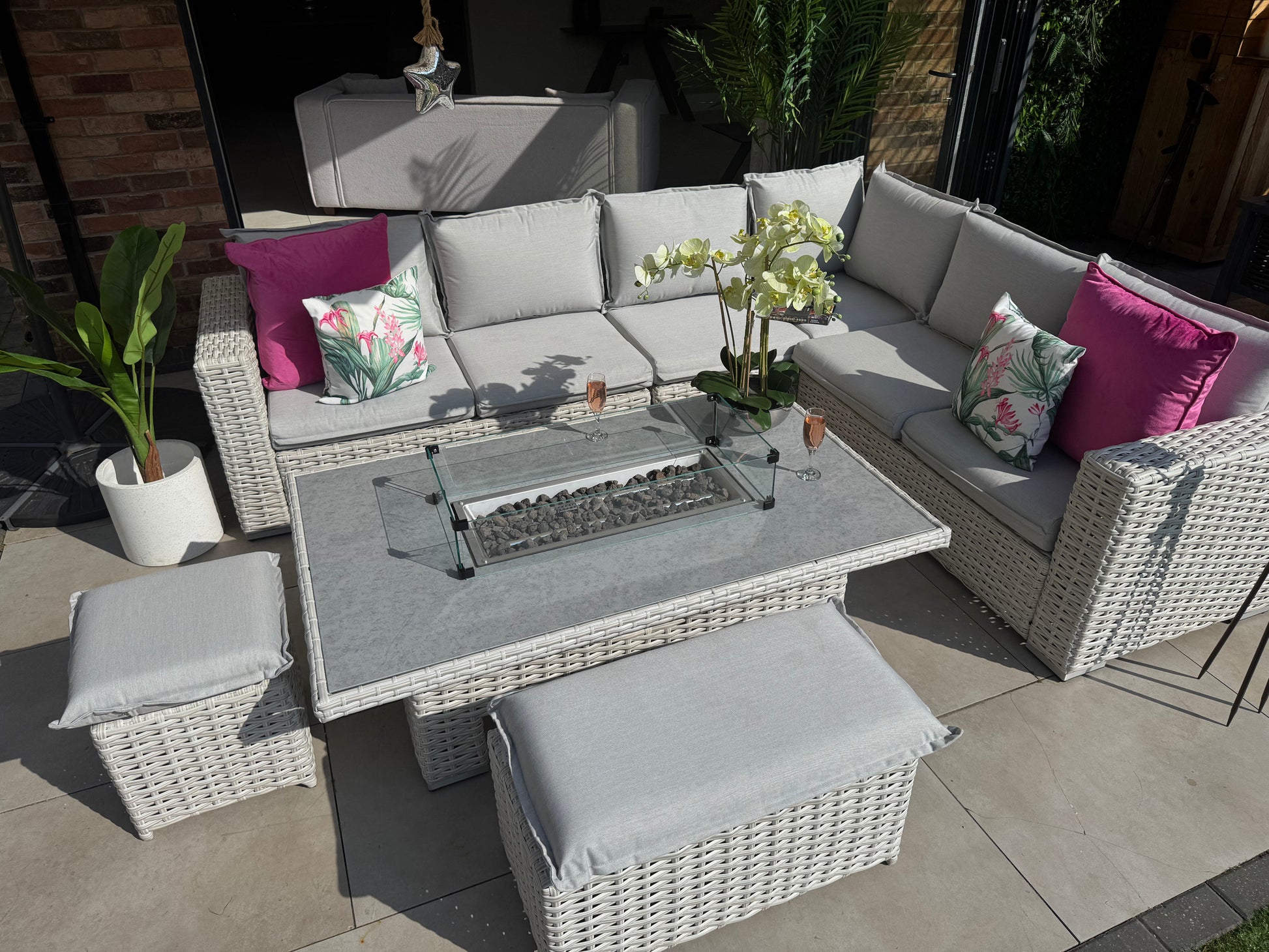 Santa Monica Corner Sofa with Rise and Fall Fire Pit Dining Table