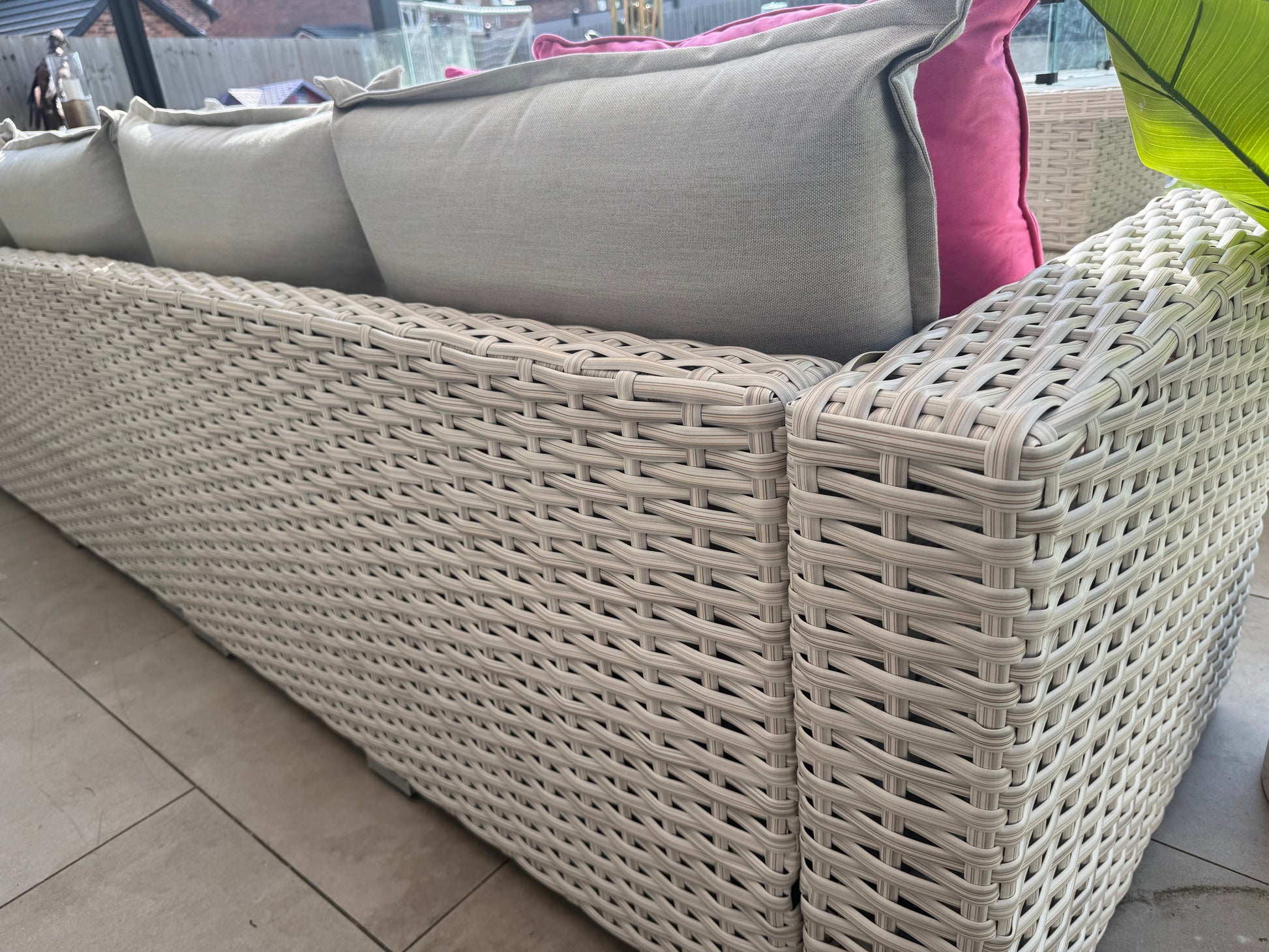 Constructed from completely weatherproof PE rattan, this set is designed to endure various weather conditions, while the showerproof cushions ensure comfort without fear of unexpected rain showers.